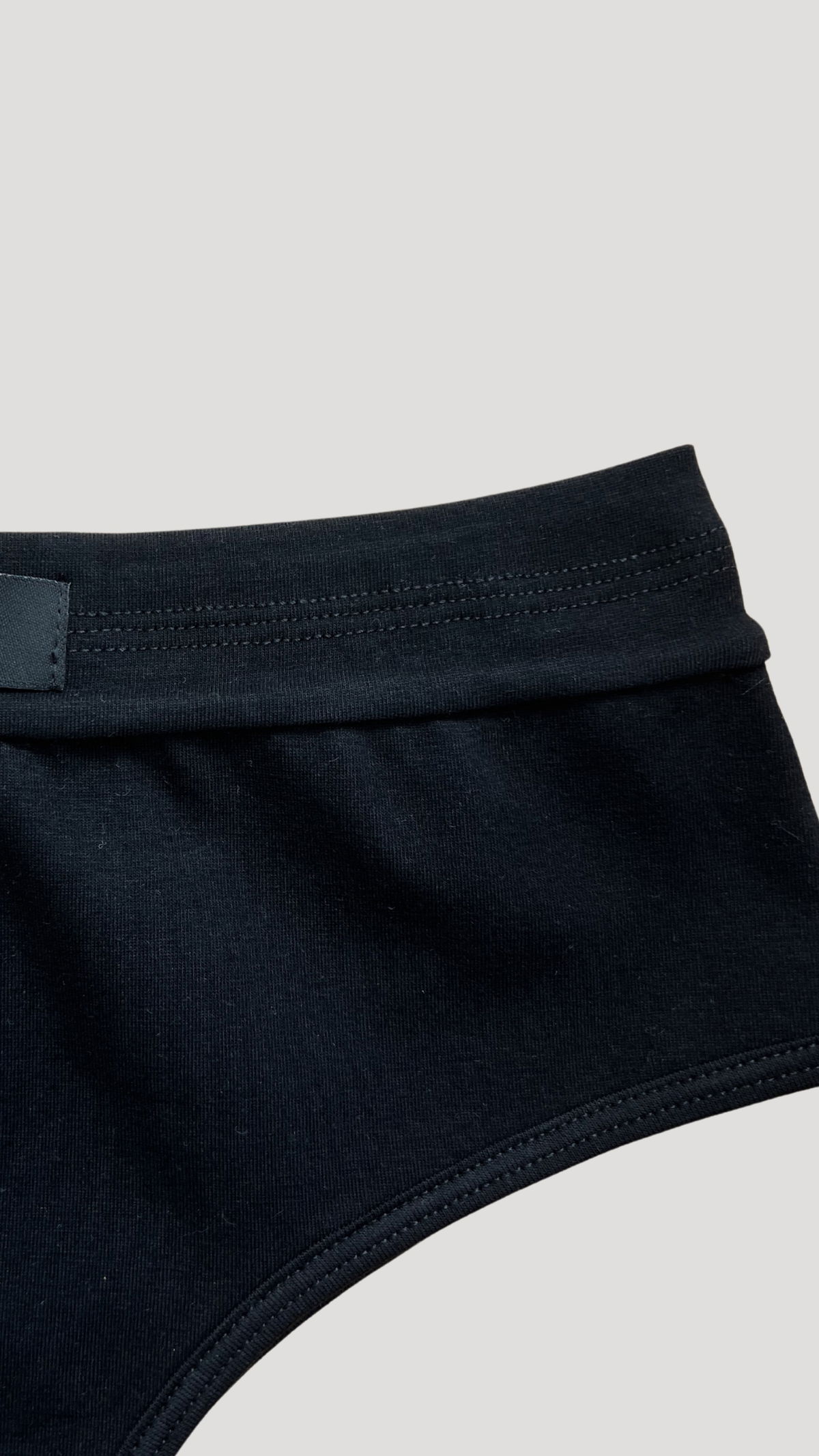 La cintura está completamente enfundada para evitar la molestia de los remallados en contacto con la piel. Las piernas están terminadas con un vivo del mismo tejido.
