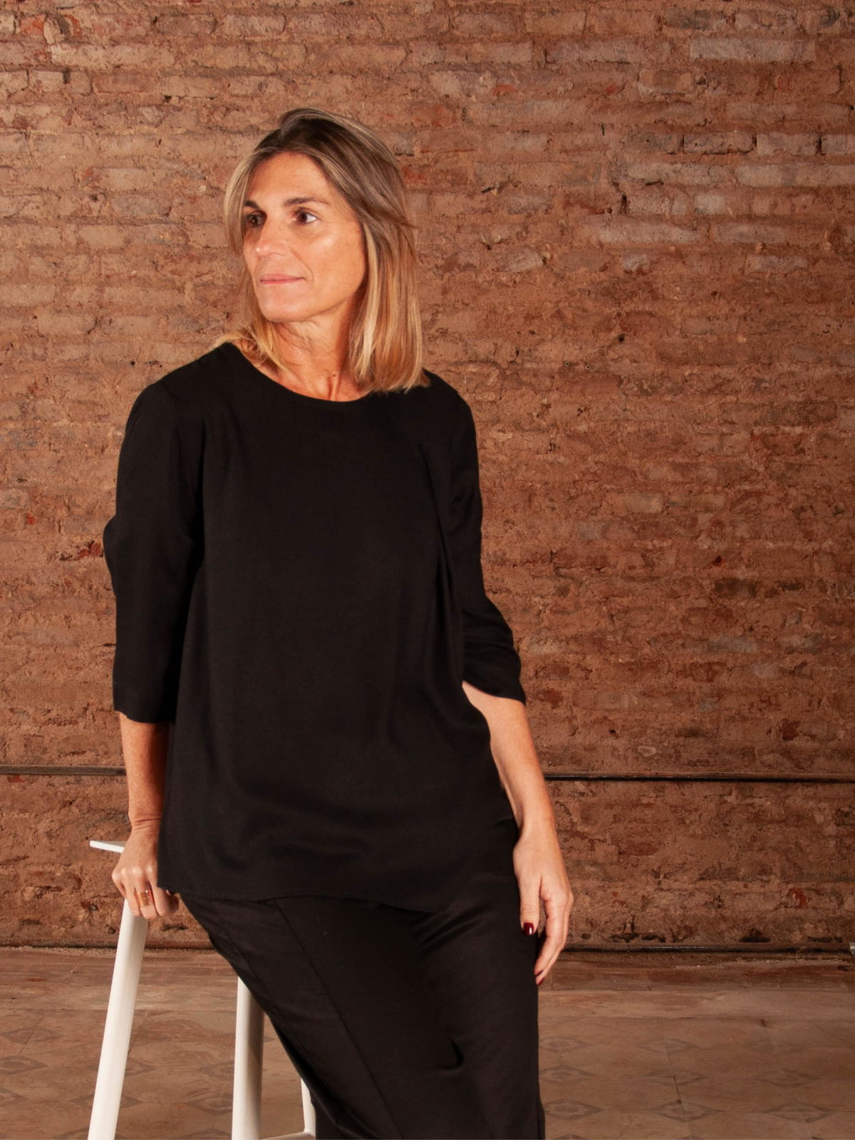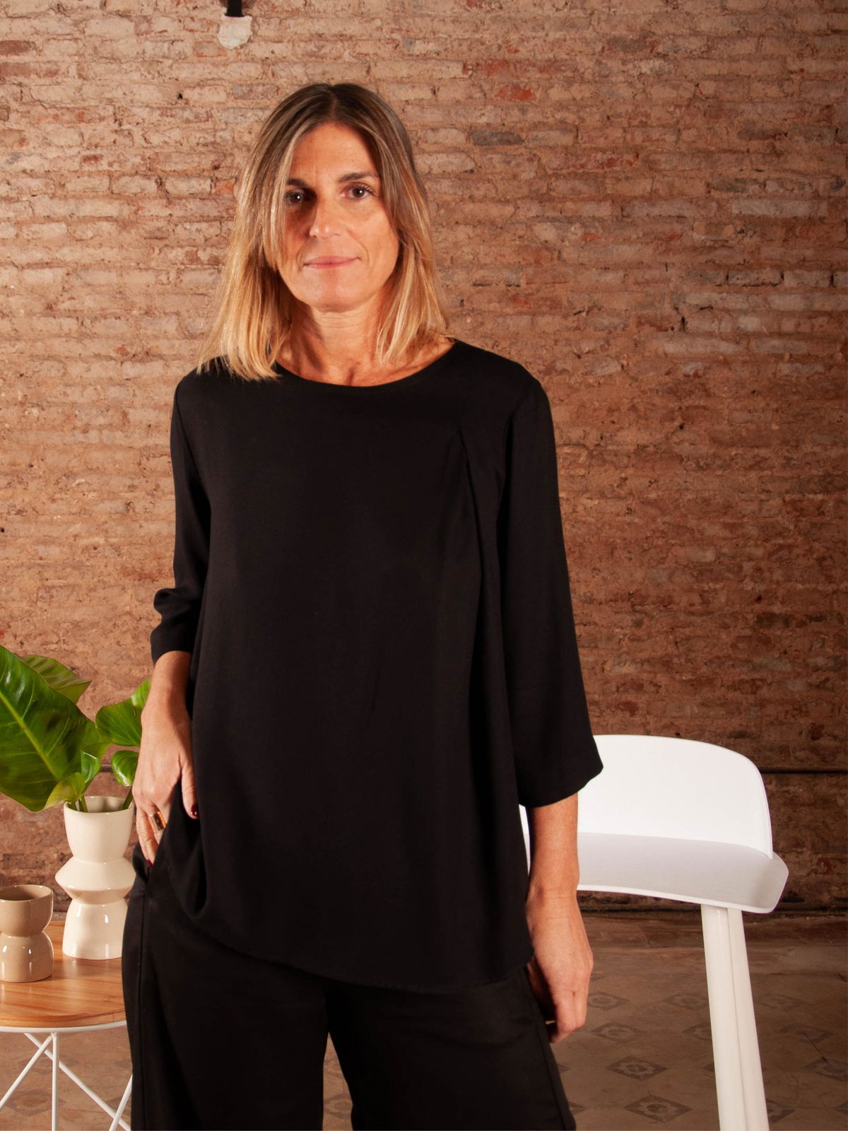 Blusa de mangas 3/4, escote redondo terminado con vistas,