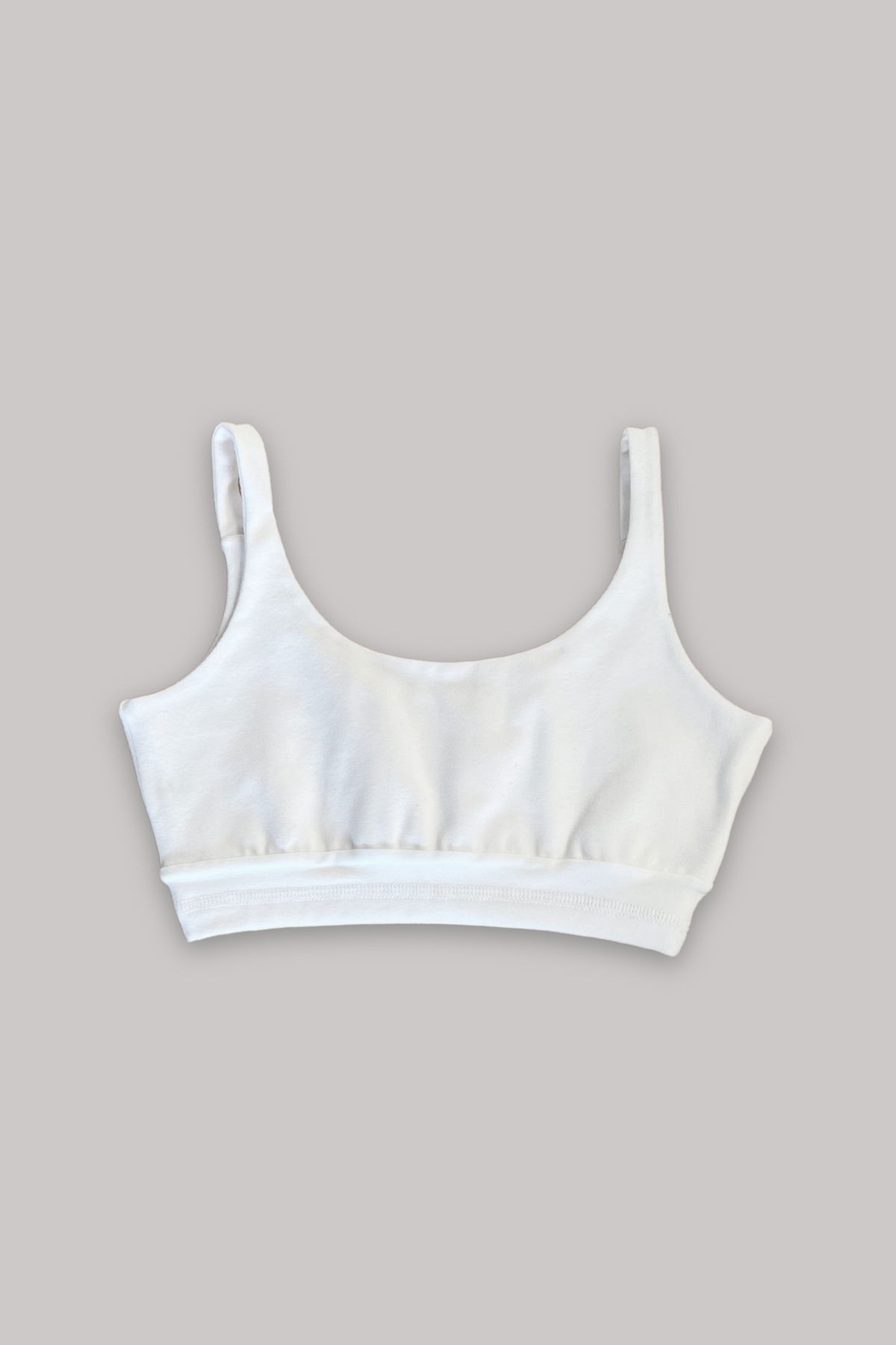 Corpiño tipo top de escote redondo, completamente enfundado, breteles de 1,5 cm de ancho y cintura pisada con bordador.