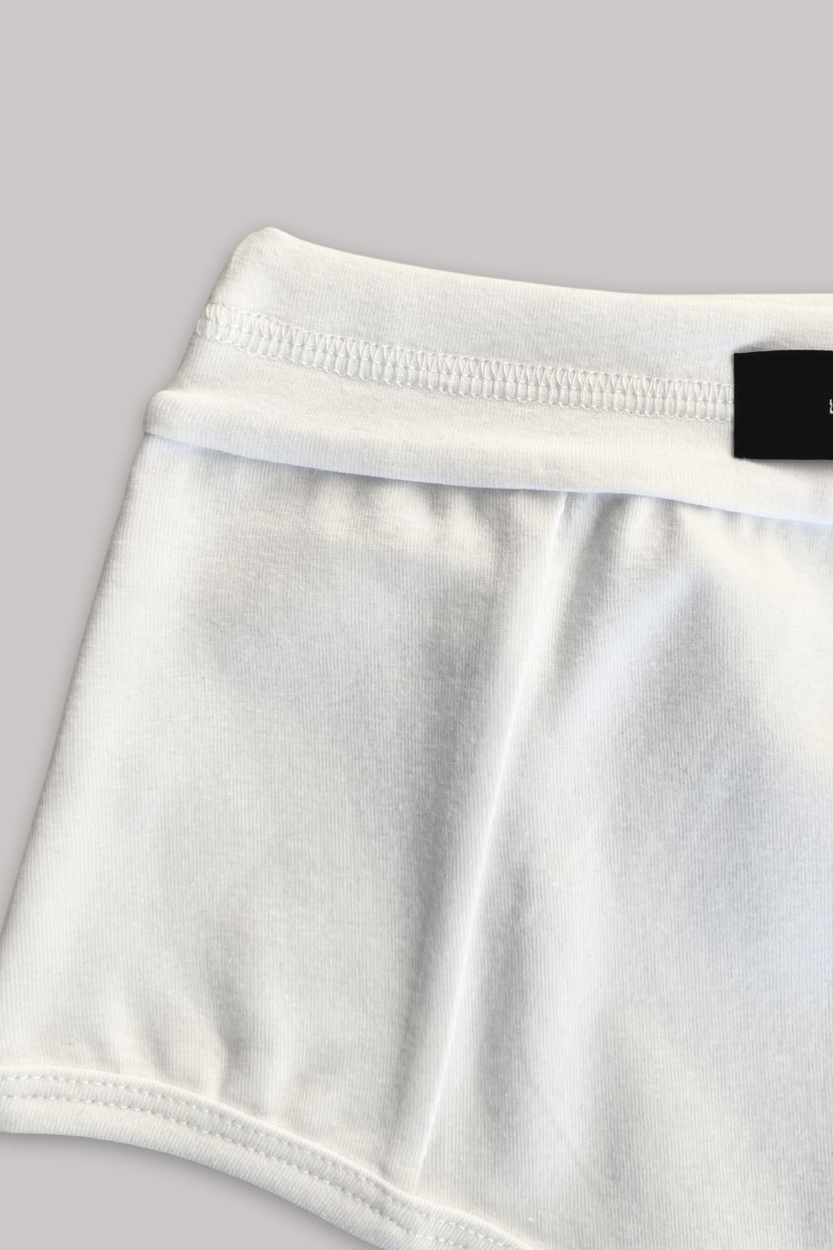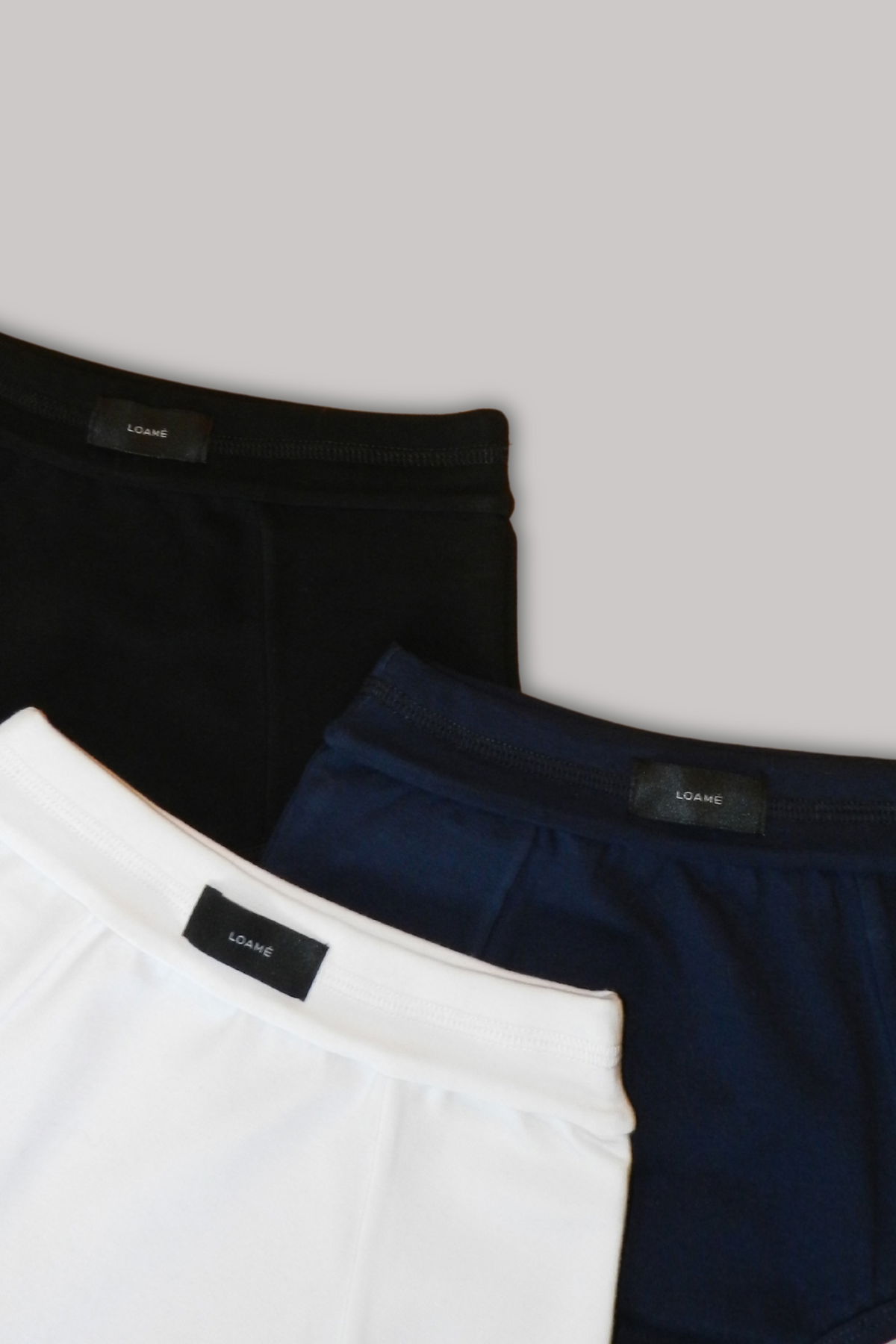 La cintura está completamente enfundada para evitar la molestia de los remallados en contacto con la piel y la terminación de las piernas con vivo collareta del mismo tejido.
